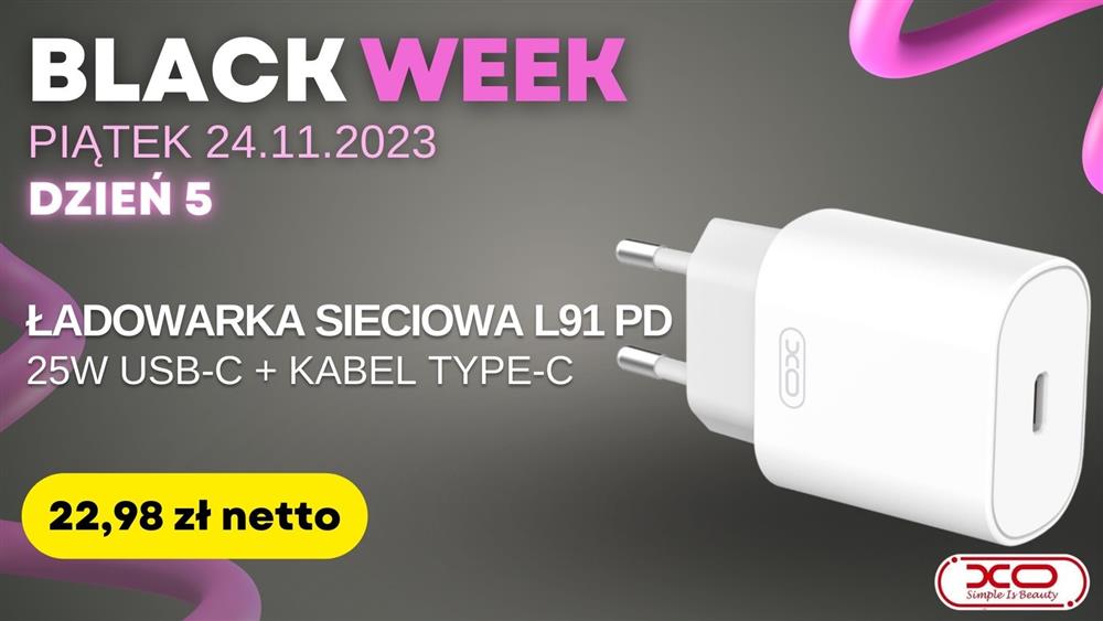 Dzisiejsza propozycja toŁadowarka sieciowa XO L91 PD25W USB-C + Kabel Type-C