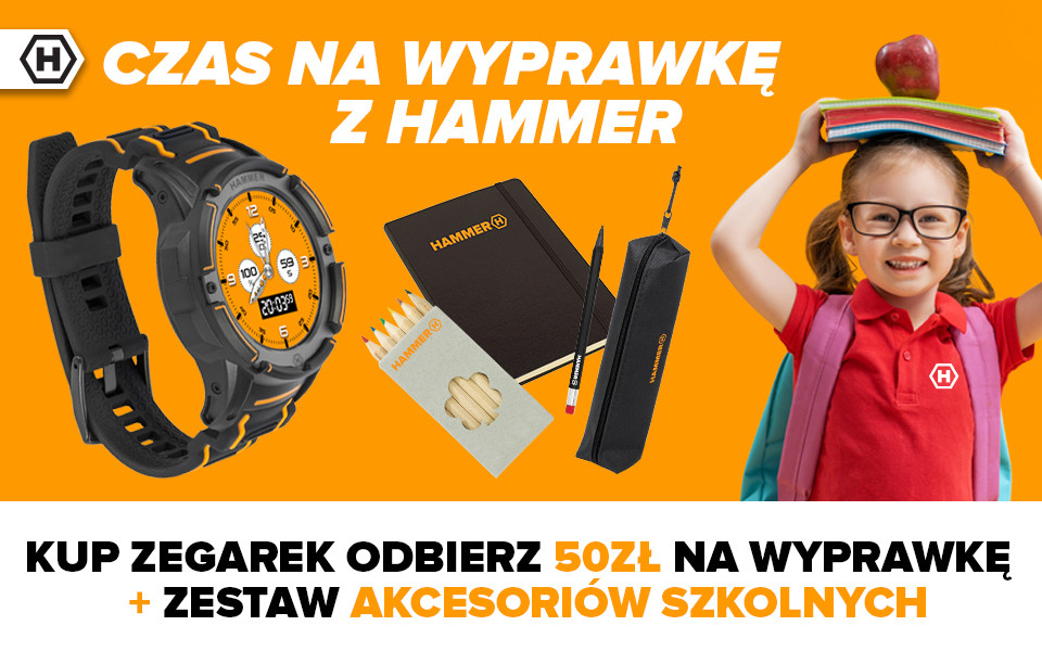 Zasady: Klient (użytkownik końcowy) po zakupie smartwatcha HAMMER WATCH w okresie 16.08.-19.09.2021 i wypełnieniu formularza zgłoszeniowego do 03.10.2021 na stronie otrzyma zestaw akcesoriów szkolnych oraz kartę podarunkową Sodexo o wartości 50zł.