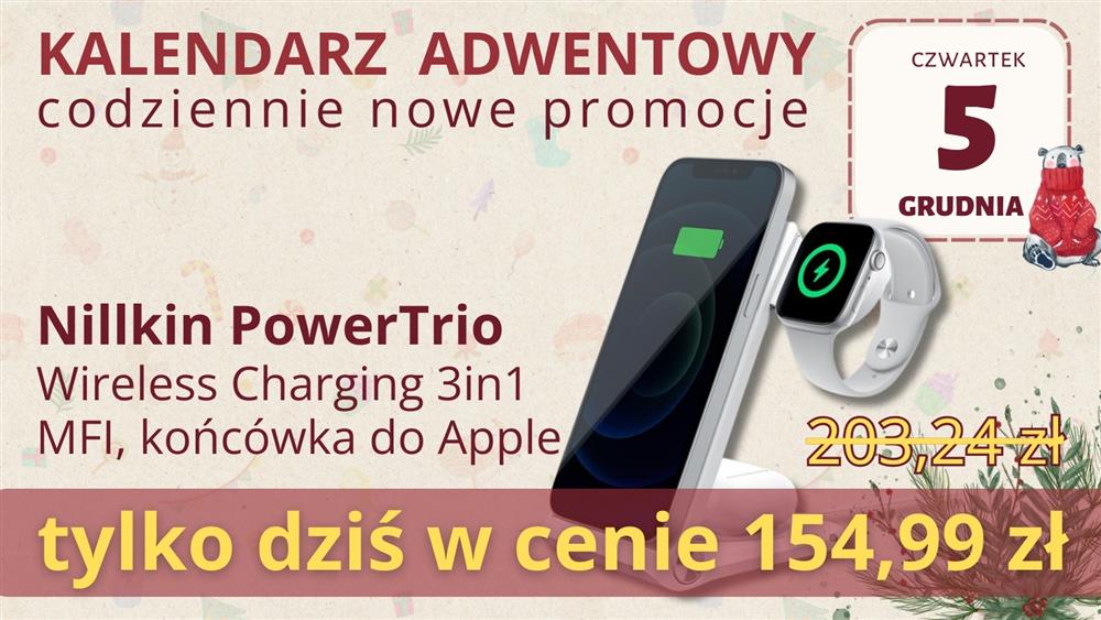 bezprzewodową ładowarkę Nillkin PowerTrio do Apple w jeszcze niższej cenie.