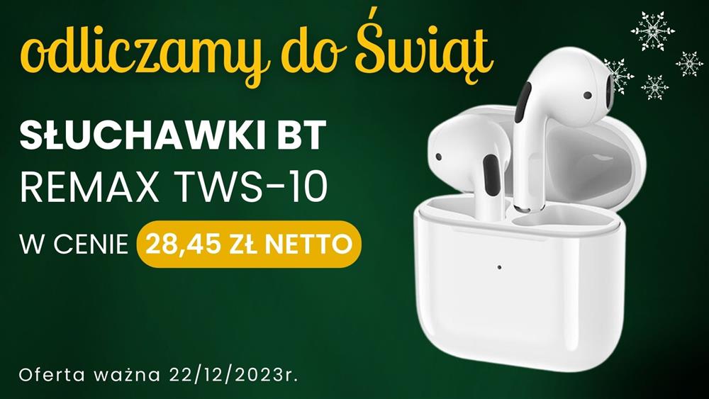 Słuchawki BT Remax TWS-10 w cenie 28,45 zł netto.
