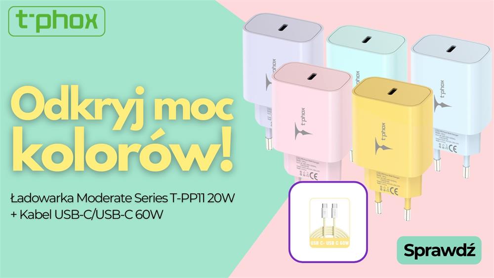 Ładowarki Moderate Series T-PP11 20W z kablem USB-C/USB-C 60W