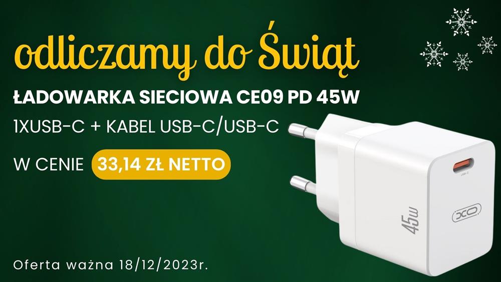 ładowarkę sieciową CE09 PD 45W 1xUSB-C + kabel USB-C/USB-C