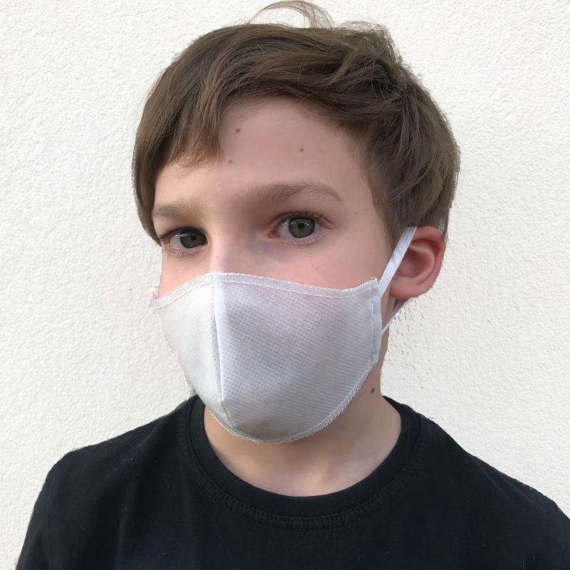 Maseczka wykonana w Polsce. Kształt tzw. pyszczek, dwuwarstwowa 50g – razem 100g/m2, Składa się z włókniny polipropylenowej tak jak w maseczkach chirurgicznych. Możliwość prania w temperaturze 60 stopni. Zalecenie – prasować przez bawełnę. Wymiary: rozmiar S – wysokość 12cm/ głębokość 10cm