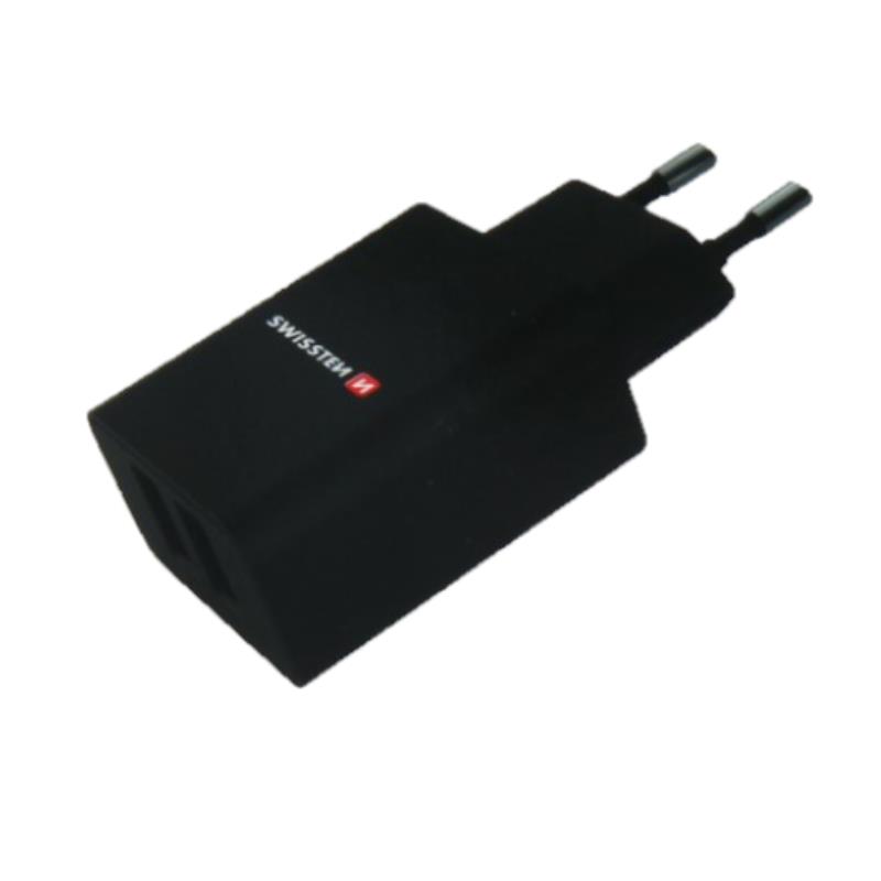 Ładowarka sieciowa Swissten SMART IC ma 2 porty USB i całkowity prąd wyjściowy 2,1 A. Dzięki temu możesz łatwo ładować dwa urządzenia jednocześnie. Opakowanie zawiera kabel danych USB / USB-C o długości 1,2 m. Czarny kolor.