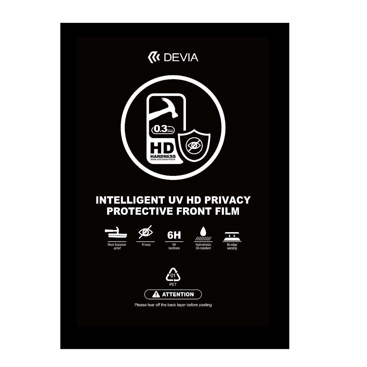 Devia 20szt arkuszy folii prywatyzującej z super przeźroczystością HD. Wysokiej jakości folia która szczególnie przyda się klientom którzy szukają sposobu na ukrycie wyświetlacza smartfonu przed niechcianym spojrzeniem kogoś z zewnątrz. Ze względu na użytą technologie folia polecana jest do najnowszych modeli telefonów wyposażonych w wyświetlacze OLED / AMOLED.