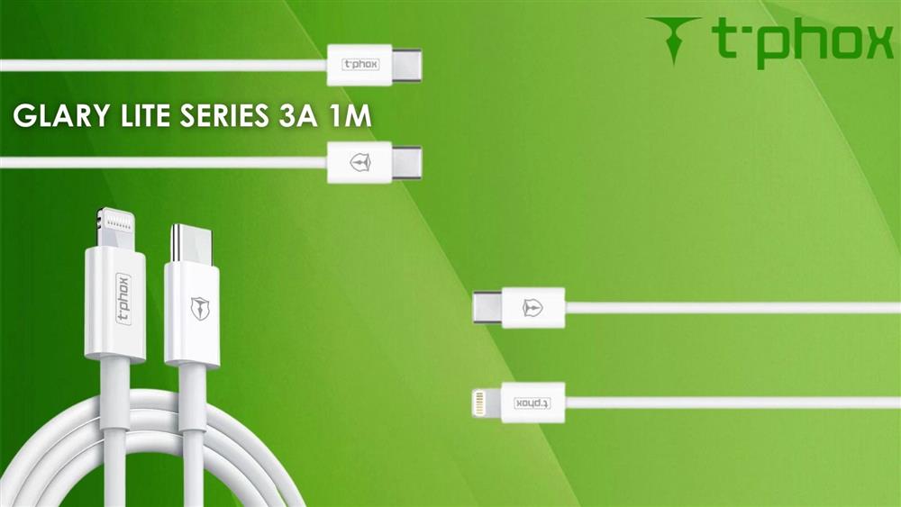 - T-PHOX GLARY LITE SERIES 18W 1M USB-C/LIGHTNING WHITE