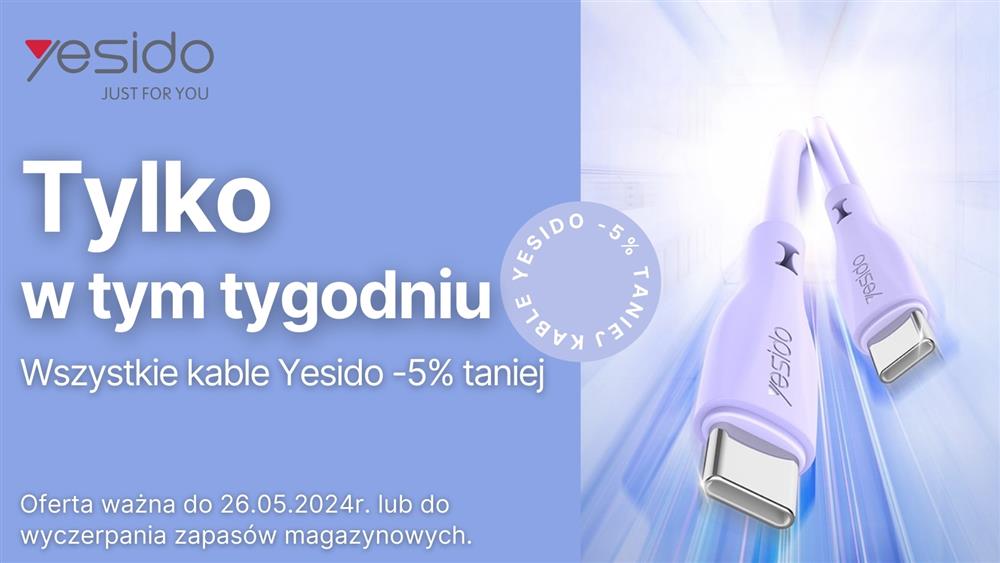 Tylko w tym tygodniu wszystkie kable Yesido -5% taniej.