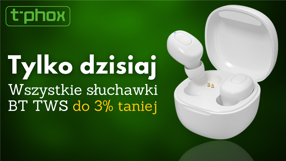 Tylko dziś wszystkie słuchawki BT TWS T-phox do 3% taniej.