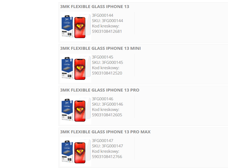 Po kliknięciu w zakładkę marki 3mk zobaczymy produkty, które posiadają status premiery, czyli m.in.: wspomniane akcesoria do ochronny wyświetlaczy serii iPhone 13.